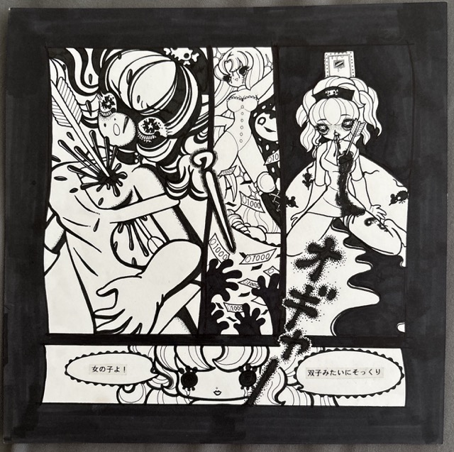 Junko has personally added hand-painted black & gold details to each piece. Only 7 sets will be available! $360 + shipping for each set. Comes with a certificate of authenticity, a hand-drawn mini marker sketch (signed and numbered), a postcard featuring the “Chocolate” artwork etc.