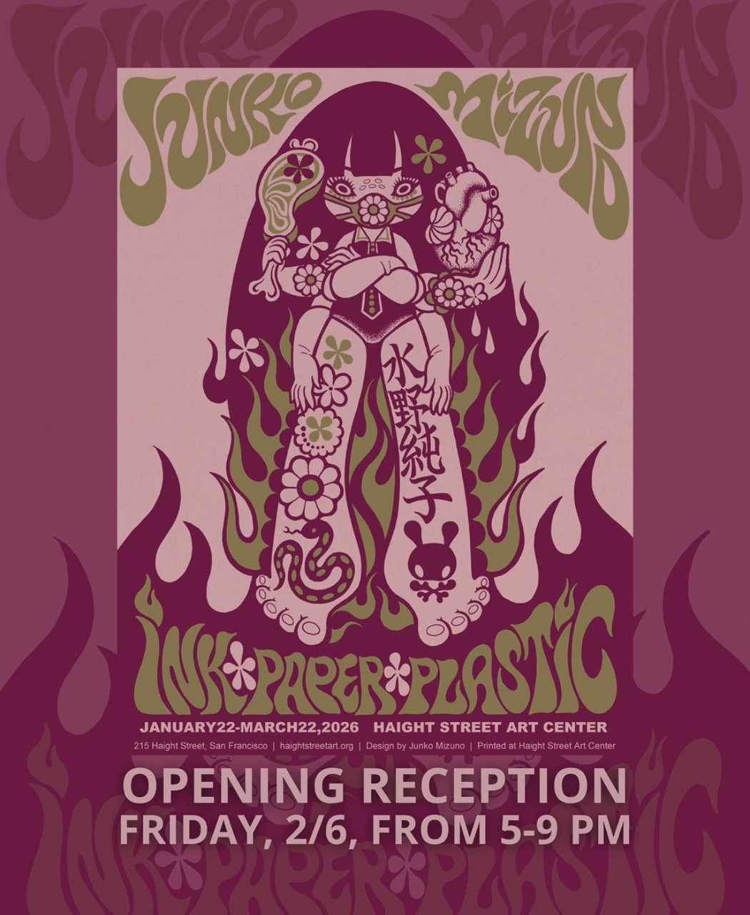 水野のシルクスクリーン・ギグポスター展「Ink, Paper, Plastic」、現在サンフランシスコの Haight Street Art Center にて開催中!
